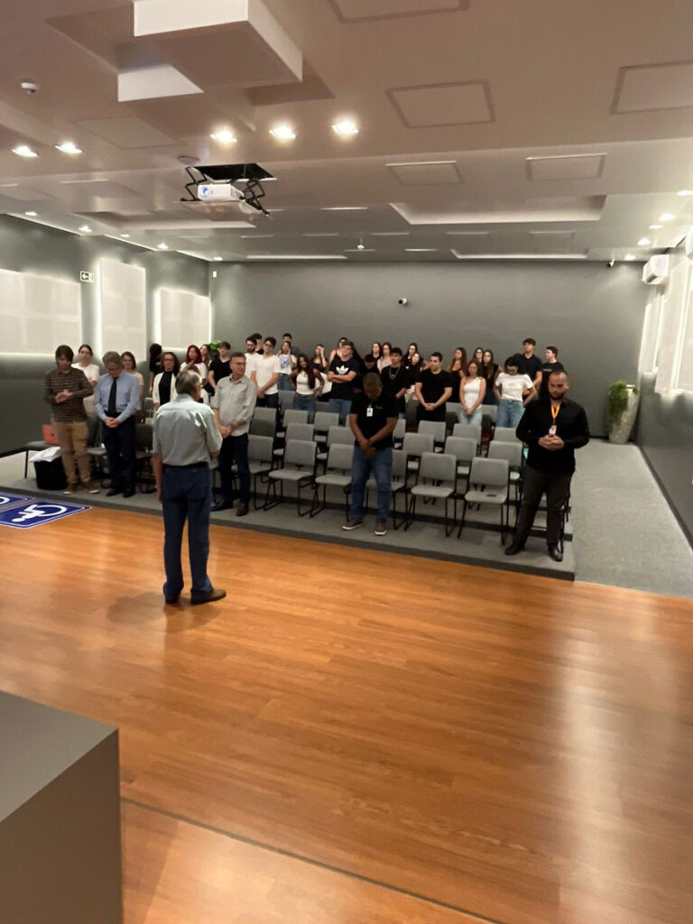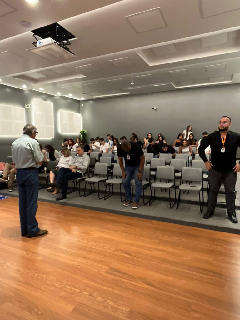 O evento foi encerrado com uma atividade de integração acadêmica liderada pelo Prof. Paulo Faustino Mariano, promovendo a união entre os novos colegas de profissão.