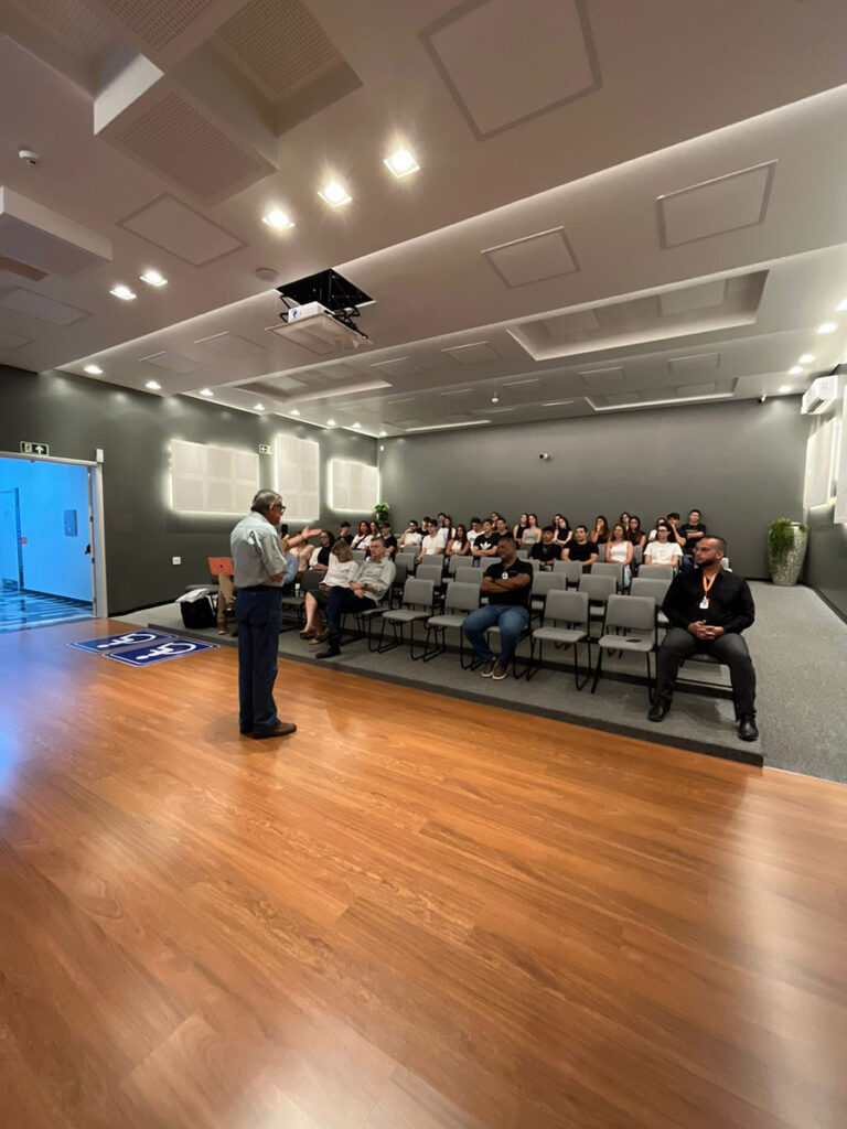 Um dos pontos altos do dia foi a visita técnica guiada pelo Prof. Ivo Koch. Os calouros conheceram de perto a estrutura da faculdade e as Unidades Hospitalares 1 e 2, ambientes onde desenvolverão suas habilidades clínicas ao longo da graduação.