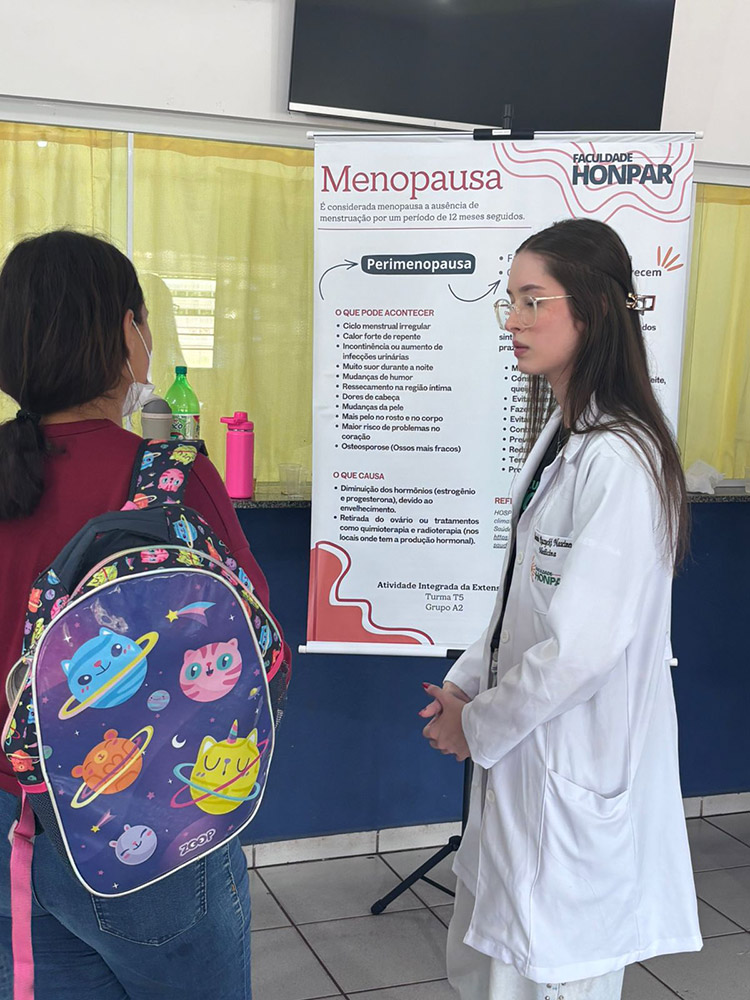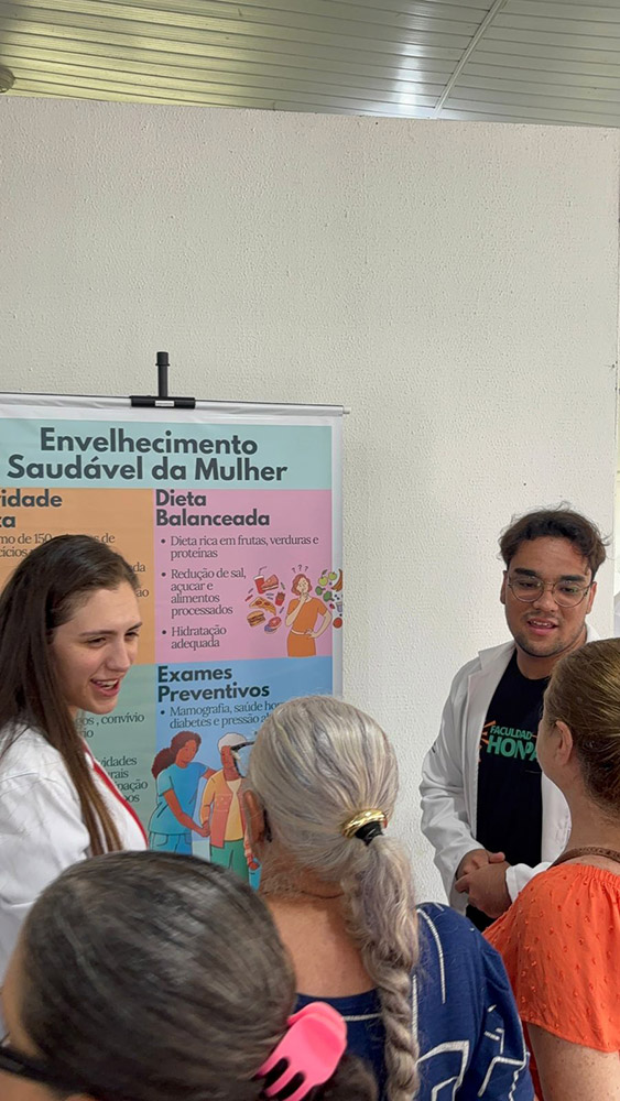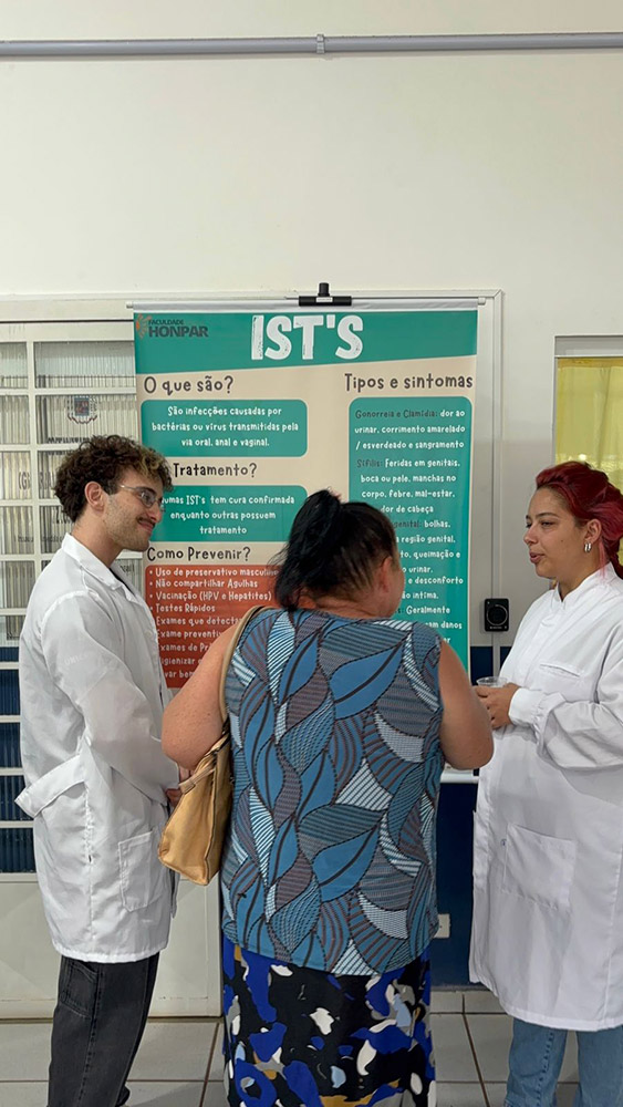 Os estudantes elaboraram e apresentaram materiais informativos sobre temas relevantes à saúde da mulher, como menopausa, Infecções Sexualmente Transmissíveis (ISTs), saúde mental e envelhecimento saudável. A proposta foi aproximar o conhecimento acadêmico da comunidade, promovendo informação acessível e conscientização.